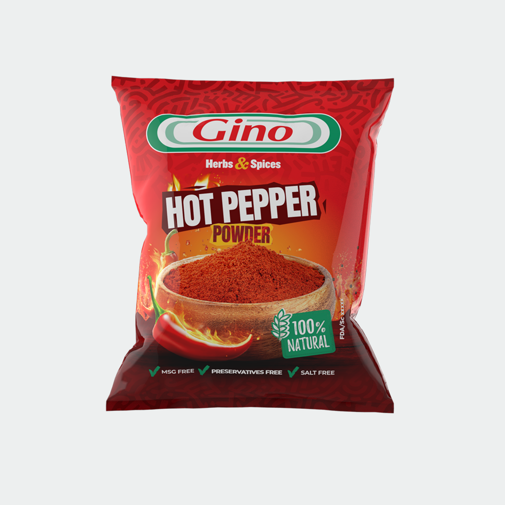 Gino Hot Pepper is available in convenient pack sizes suitable for home and professional cooking. It is available in the 50g pack and the 6g pack